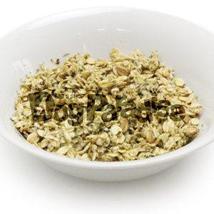 原材料:ロールドオーツ、ライ麦フレーク、大麦フレーク、挽割ピーカン、第三リン酸カルシウム、乾燥ケルプ、パセリの葉、粉末キャロブ、バジル、乾燥アルファルファ、ひまわり油、ビタミンD3