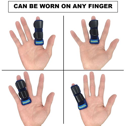 Studio : GenetGo Publisher : GenetGo Binding : Health and Beauty Product Description Feather: - Made of the highest grade neoprene, covered with stretch nylon and cotton fabric against the skin for your best comfort - Universal finger splint design,can be worn on any finger like: thumb, middle, index, ring or pinky, on either hand. - Built-in aluminum bar finger splint, provide great and firm support to your finger - Lightweight, portable and easy to take on or off - Helped alleviating the locking, popping, bending, swelling, soreness and stiffness. - All day wearing comfort with regular activities, like typing, cooking, driving and sleeping.