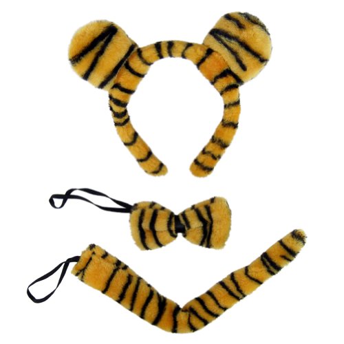-. Binding : Apparel -. Brand : SeasonsTrading -. Color : Yellow -. Department : unisex-child -. Feature : Tiger costume accessory set includes plush ears, tail, & bow tie / Tail is bendable & poseable. Black elastic bands attached to tail & bow tie for easy wear. / One size fits most / Need an instant tiger look? This is it ... fun tiger costume set for any occasion! / Tiger Costume Set also available in black and white stripes (sold separately). Search SeasonsTrading Tiger Costume Set for details. -. MPN : STC12006AMA -. PartNumber : STC12006AMA -. ProductGroup : Apparel -. ProductTypeName : ACCESSORY -. Size : One Size -. Title : Tiger Ears, Tail, & Bow Tie Costume Set ~ Halloween Costume Kit (STC12006)