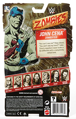 -. Feature : The WWE zombies are coming! / Favorite WWE Superstars have now become "undead" and are ready to roam the earth in zombie form! / This WWE Zombie-fied Superstar figure features unique decorations and pose / Frightfully fun to play with and to collect! / Choose from eight Zombie-fied WWE Superstars including Triple H, The Rock, Roman Reigns, Bray Wyatt, Undertaker, Paige, Dean Ambrose and John Cena