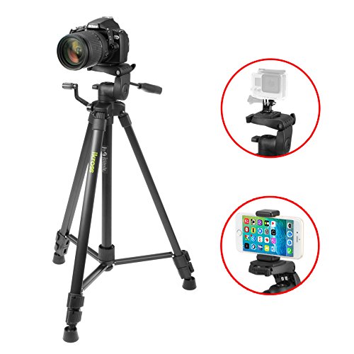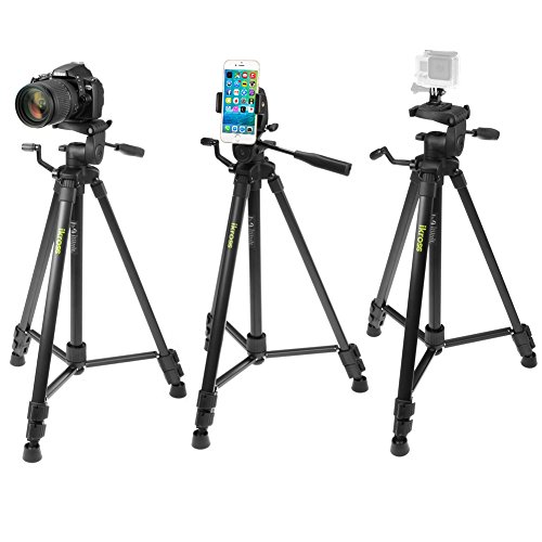 iKross 61 inch Dslr Camera Tripod Mount Holder with Smartphone / GoPro Adapter and Carrying Bag iKross Flexible Tripod Holder supports a variety of Cameras, GoPro Cameras, Tablets, and Cellphones.Aluminium and plastic material making it sturdy yet light; Retractable 4 sections tripod legs for easy storage, no tools installation, perfect for photograph lovers.
