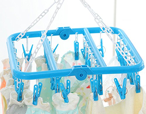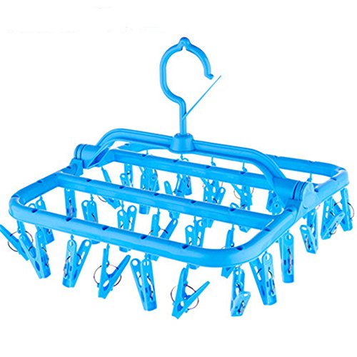 Guhui Drying Foldable Laundry Hanger Rack for Small Clothes Socks and Intimates with 32 Antiskid Clips (Blue)