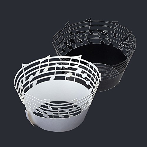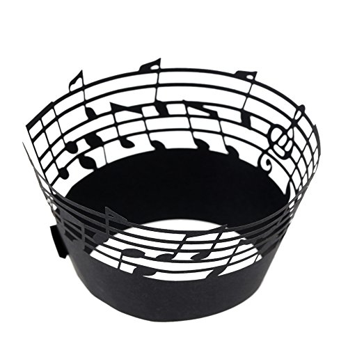 Anself 50Pcs Lace Muffin Case Cupcake Paper Cup Liner, Music Notes Staff Pattern