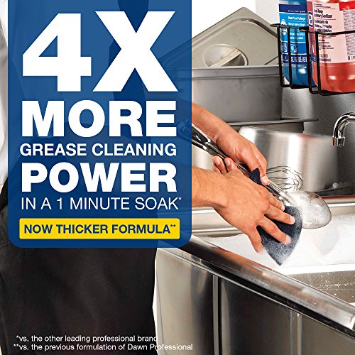 ReleaseDate : 2017-10-24 Studio : PG Professional Publisher : PG Professional Binding : Misc. Product Description Dawn Professional manual pot and pan detergent is a highly concentrated liquid dishwashing soap that has the grease-fighting power of dawn and is specifically formulated for tough jobs at your business. This liquid dish soap is specially formulated to help remove greasy food soils from pots, pans and utensils and provides up to 512 sinks per case.** dawn dish detergent can work as an all-purpose cleaner for a variety of task areas, including three-compartment sinks (wash sink), countertops, dining areas, cooler Doors, Windows (outside and inside), portable equipment, trash receptacles, coffeemakers, drive-thru menu boards, and Tile walls. *Based on typical product performance, sink sizes and washes using four sinks a day. **Based on recommended dosage of 1 oz. Per 10-gal. Sink and applies only to cases with four 1-gal. Bottles diluted per package instructions. Results may vary based on dilution needs. 0
