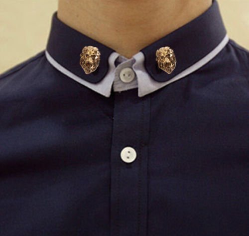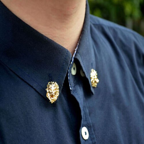 Gold Tone Cool Relief Lion Head Men Women Shirt Suit Collar Pin Badge Brooches