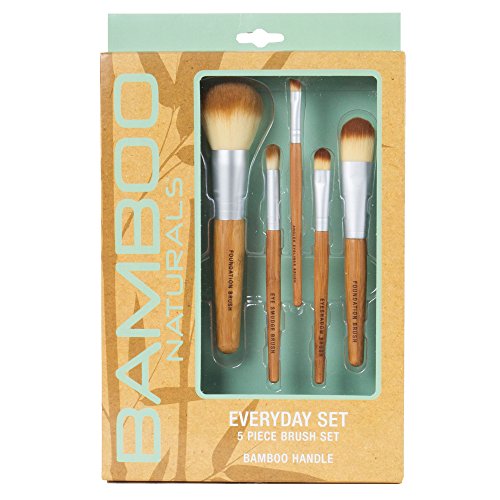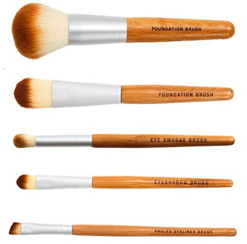 Bamboo Naturals Makeup Brushes, Natural Bamboo Handles, Includes Five Brushes: Powder Foundation Brush, Liquid Foundation Brush, Eyeshadow Brush, Smudge Brush, Angled Eyeliner Brush