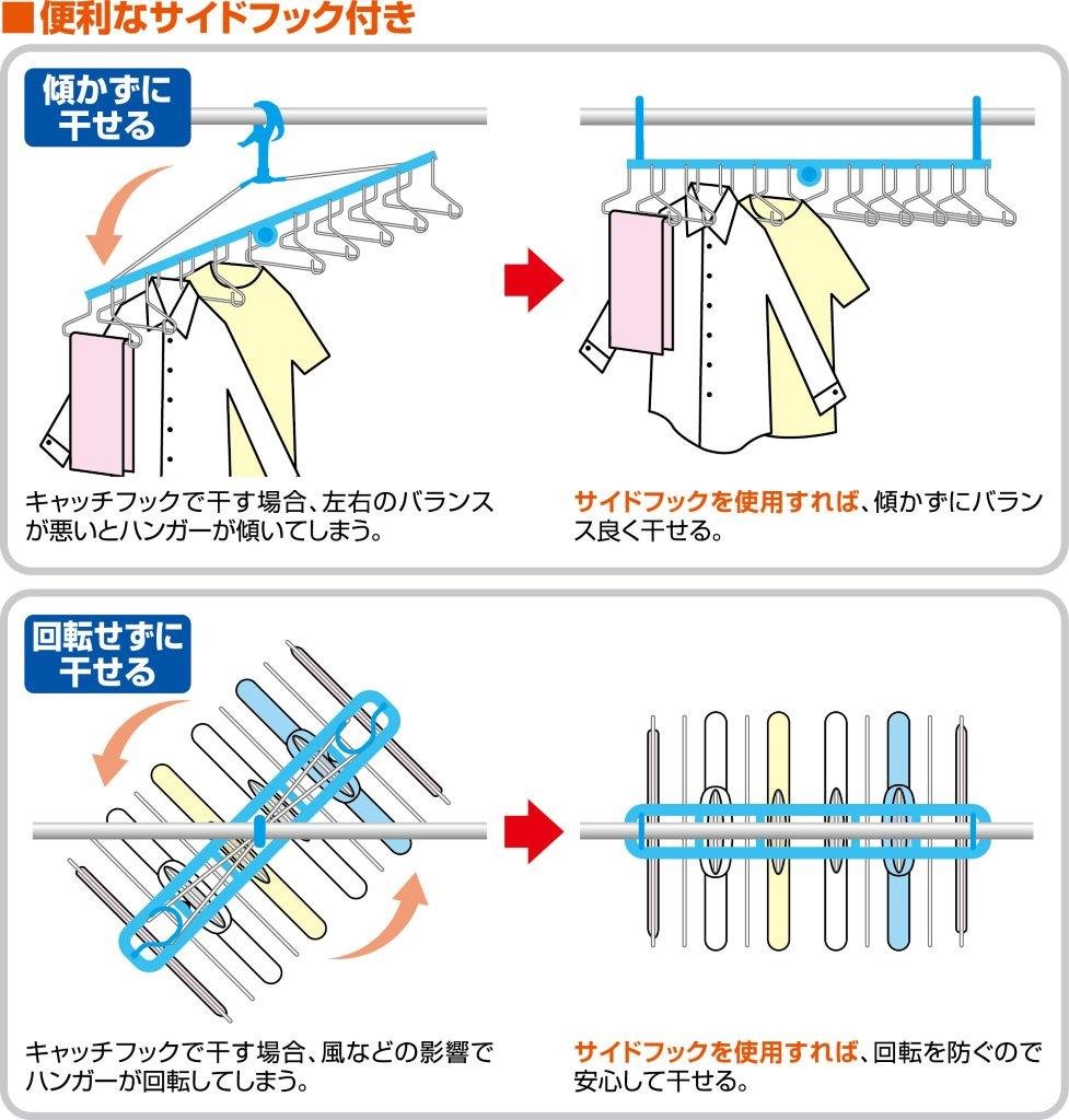 In addition, using a side hook will allow you to dry without worrying about left and right balance and inclination, and will prevent the hanger from rotating due to the influence of the wind etc.