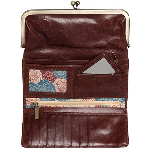 -. Feature : Includes ten card slots, three bill pockets and ID window. Includes small mirror / Includes one interior zipper pocket and one exterior kiss lock pocket. / Linings vary seasonally