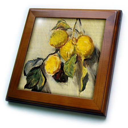 3dRose Branch of Lemons Claude Monet Painting Cropped Dated 1883, Pd-Us Framed Tile, 8 by 8"