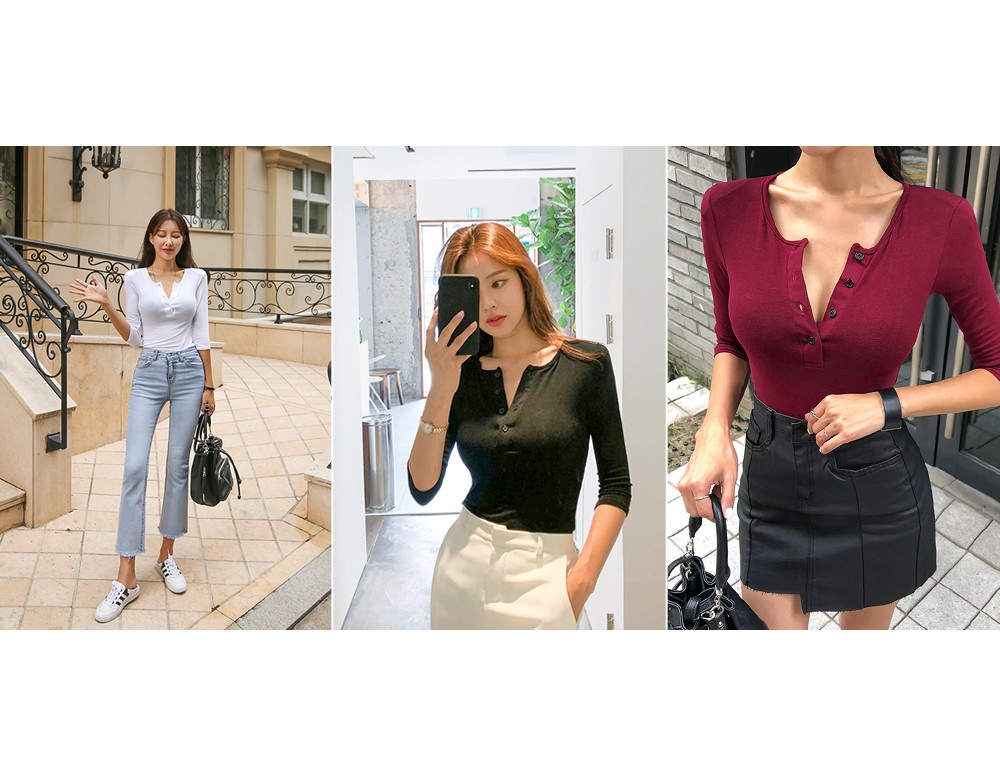 '간절기시즌 딱 필요한 7부 소매의 단추 티셔츠'