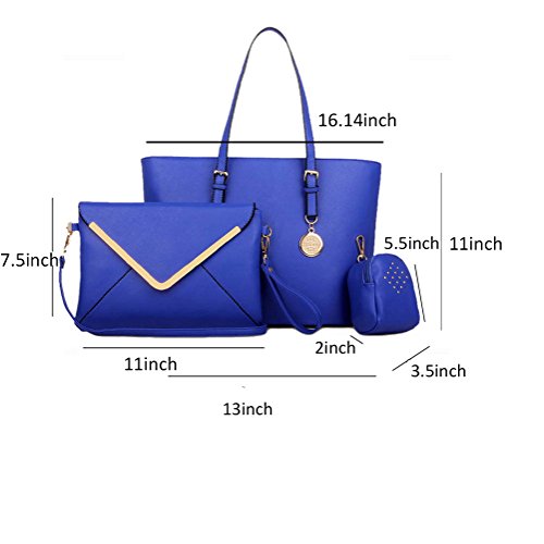 Item Type: Handbag Purse Bags Set Outer Material: PU Inner Material: Polyester Closure: Zipper Pattern: Solid Size:The Tote Bag:40*9*27cm (L*W*H) Crossbody/messenger bag:27*19*10cm Pouch:9*14*5cm Size may be 2 cm/1 Inch in accuracy due to hand measure Occasion: Versatile Inner Pockets: 6 Style: Fashion ----------------------------About The Shipping-------------------------------- We shipping by USPS with the TRACKING NUMBER. Usually the shipping time only take 7-25 days,while please ignore the shipping time; More than 90% of parcels will be delivered successful in 15 days; More than 95% of parcels will be delivered successful in 20 days; Nearly 99% of parcels will be delivered successful in 25 days; If you can not get your tracking number on detail page, contact us freely, i will give you what you need! ----------------------------About Our Retrun Policy---------------------------- As a faithful seller om Amazon, we offer convenient after-sales service: If you receive broken,damaged or wrong item,please do not worry, prepare the picture and cntact us freely, we will give you refund or resend in 1 working day!Also the items you do not need to return back, for shipping fees is high. If for other reasons,color difference, quality problem and others we encourage our customer contact us with your picture! we will solve your problem as soon as possible.Feature