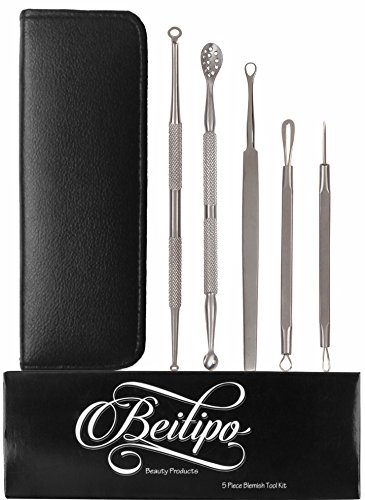 Beitipo 5 Piece Blemish Tool Kit in Choice of Silver or Black Zippered Case Offers:→Quality Stainless Steel tools for easy sterilization with no chance of rusting or corrosion. Not all Comedone Extractors are created equal, be sure to buy quality for long term durability and safety.