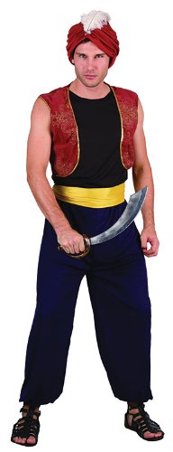 -. Feature : Men's Arabian bandit fancy dress costume / Ideal for Aladdin themed fancy dress, pantomimes and stag parties / Includes jacket, trousers and hat / Size: One size fits most