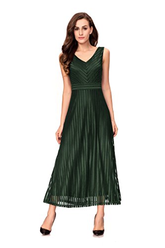 Noctflos Women's Sleeveless V Neck Vintage Chiffon Long Maxi Dress with Sequins