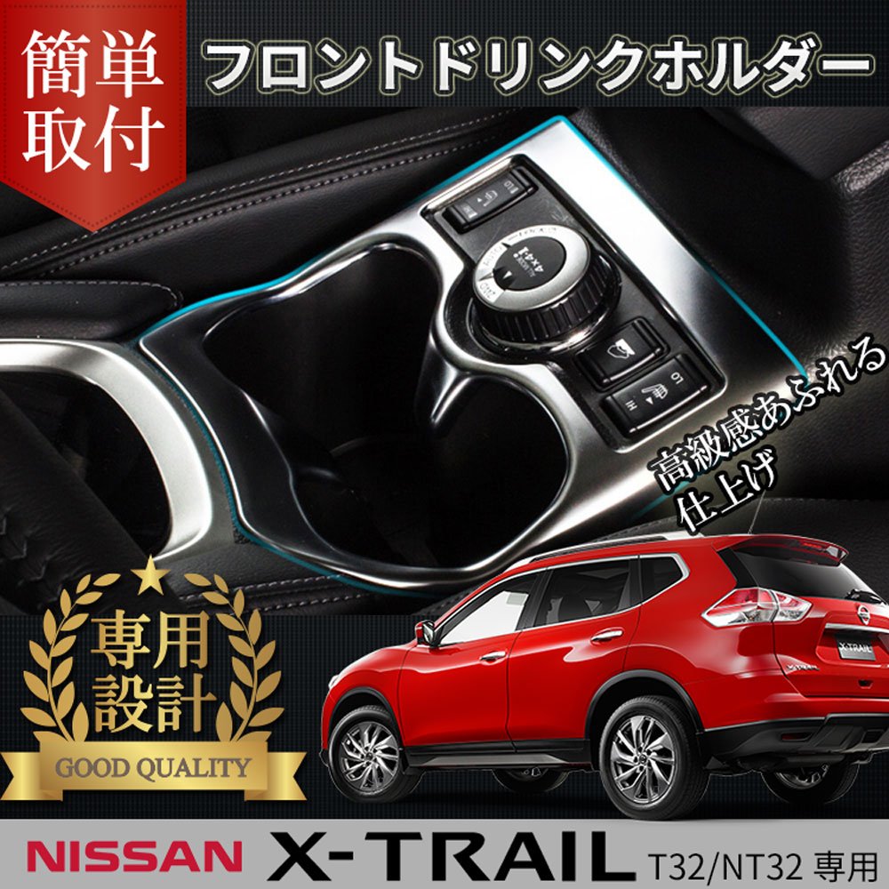 [E-Drive] Nissan new X-TRAIL T32 dedicated interior front drink holder cover custom parts cover plating garnish goods outside