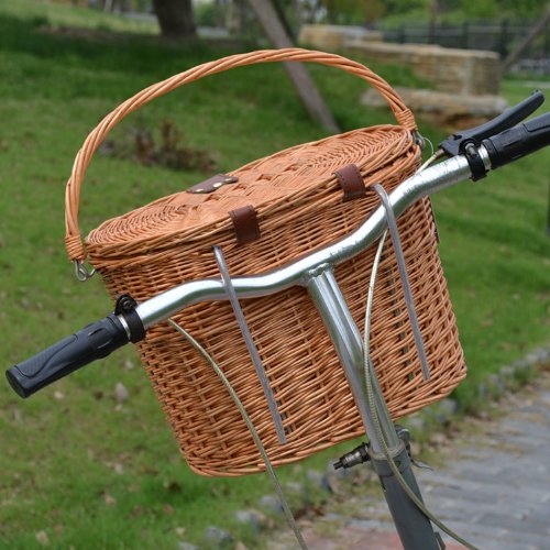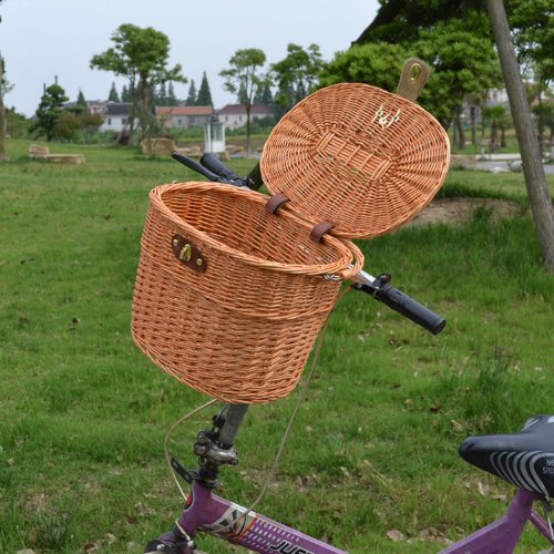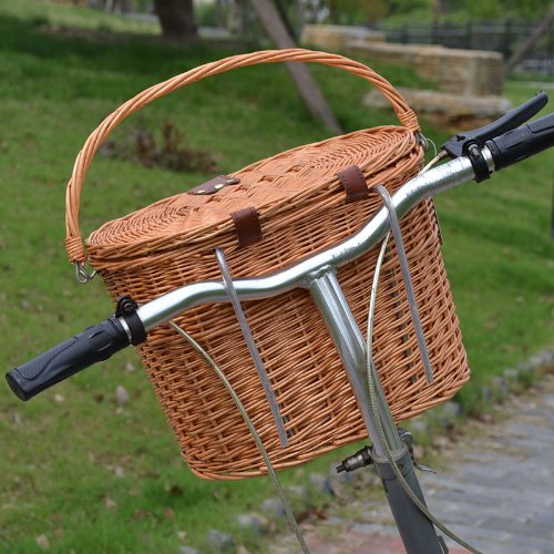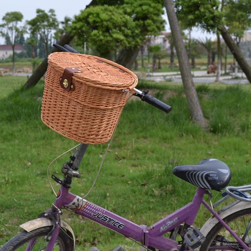 - Title : RURALITY® Wicker Bicycle Front Basket with Lid and Handle