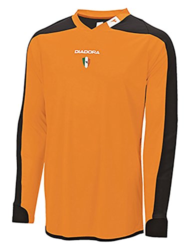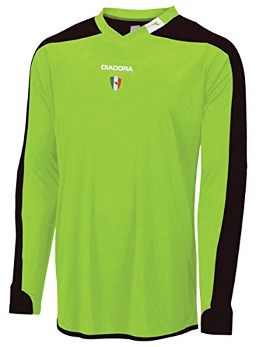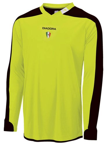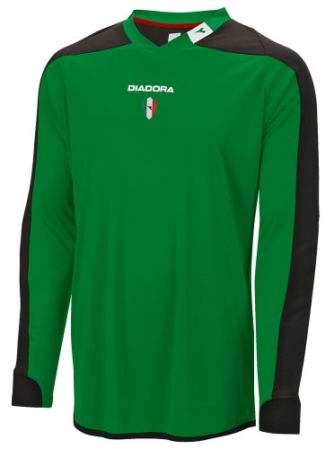 Studio : Diadora Publisher : Diadora Binding : Misc. Product Description Diadora Enzo GK Jersey .Diadora caters to the champions of yesterday, today and tomorrow. Diadora is the only manufacturer of athletic footwear and apparel to still make product in Italy as the family business continues its success and dedication to sports. Long sleeves have a ribbed insert on the sleeve cuff. Padded elbow area for exceptional protection. Diadora brandmark screened on the back under the ribbed neck. Features Four way stretch fabric allows goalies absolute freedom of motion Moisture management DiaDry keeps you dry and cool Self fabric v-neck with brandmark on the left side Embroidered Diadora and Italian crest on the center chest Colorblocked performance jerseys are 100% polyester