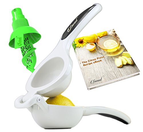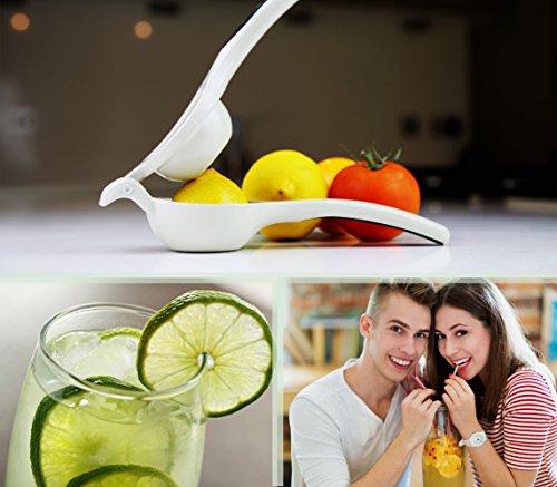 -. Feature : Professional best citrus juicer is a high quality sturdy lemon squeezer that lets you enjoy freshly-squeezed lemons, lime, orange & other citrus juices in one easy press! Accesories include a lemon sprayer and an e-book. Say bye to electricity, batteries or hard-to-use & hard-to-clean juice machine .Easily squeeze every bit of your lemon or lime to the last drop Heavy duty die cast aluminum. / Lets you juice all types of fresh citrus fruits - limes, lemons, small oranges (and even big oranges if cut into quarters) by using one hand manual squeezer only. Portable and handheld jumbo size lemon juicer, made from the premium quality Extract all the juice without the rind, pulp or seeds - and get every last drop. / EASY TO USE - With 6 perfectly-sized holes , the citrus press gives pure juice without any seeds or pulp. Use the sprayer to add a twist to your dishes and recipes. Comfortable and simple to use manual press. Makes squeezing lemons, limes, small citrus fruits and vegetables like cherry tomatoes, effortlessly. / BRIGHTEN UP YOUR KITCHEN NOW - Crafted from sturdy aluminum, which is FDA certified as food-grade and acid-safe and connected by the strongest rivets! This multi purpose lemon/lime squeezer fits all kitchen and home schemes.Dishwasher safe and easy to clean, made to last and will not scratch, rust or peel Long lasting, moisture, heat, and stain resistant enamel coating won't rust or react to citrus juices. / Now you can easily add a splash of refreshing citrus to cocktails, marinades, dressings, meringues, pies, cheesecake, desserts, icing and even grilled meats. What a perfect gift for kitchen enthusiasts & cooks of all levels! Use it to make real homemade organic lemonade and include this in your healthy daily diet. Truly a must have tool for any kitchen or bar, makes an excellent gift for the gourmet in your family.