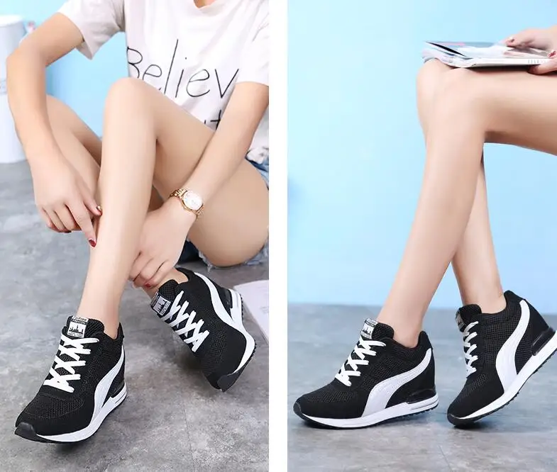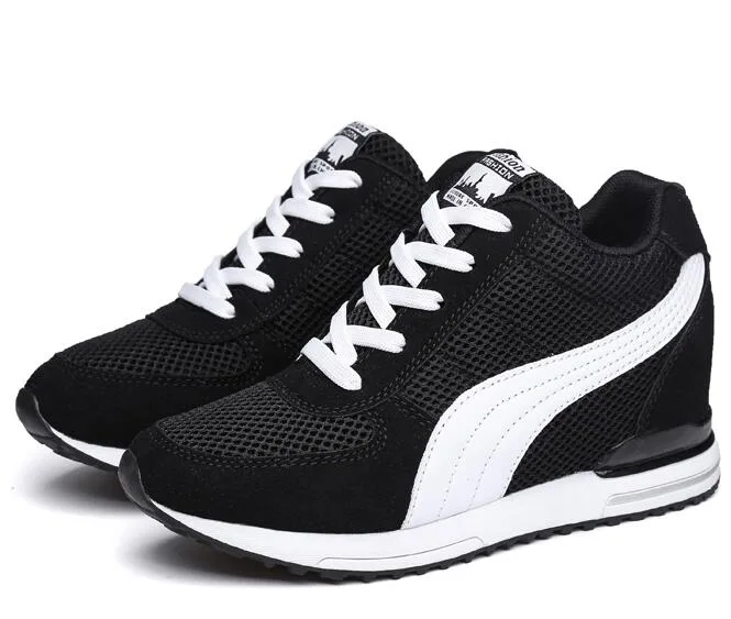 sneakers high heel:black and white sneakers