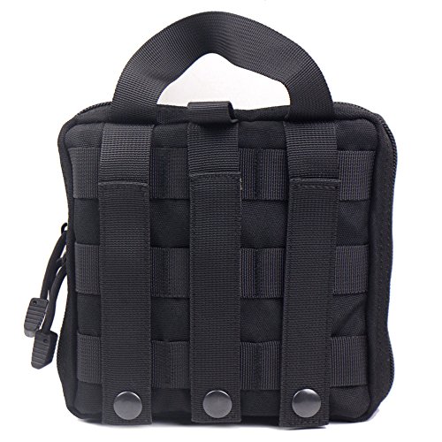 -. Binding : Misc. -. Brand : Unknown -. Color : Black -. EAN : 0600984475964 -. Feature : Size :About 6.3"H x 6.3"W x 1.5"D / Material:Made of 1000D,durable, the stitching is reinforced for tough use / Upper zipper pocket folds out into 3 parts. The first section has several pockets and elastic instrument holders. The second section is similar, but the elastic sections in it are more suitable for larger items such as an ace bandage or a folding knife. It also fits an Israeli trama bandage nicely. / it is ideal for attaching to the outside of molle compatable backpacks with the ability to be detached by simply ripping it off from its velcro patch. It also has a large strap with a buckle that is used to make it for compact and secure items more efficiently. / Ship with tracking number via E-packet,fast! -. IsAutographed : 0 -. IsMemorabilia : 0 -. Label : China -. Manufacturer : China -. ProductGroup : Sports -. ProductTypeName : SPORTING_GOODS -. Publisher : China -. Studio : China -. Title : Tactical Molle EMT/First Aid Medic Kit Pouch Organizer Utility Gear Bag Pouch For Backpack (Black) -. UPC : 600984475964