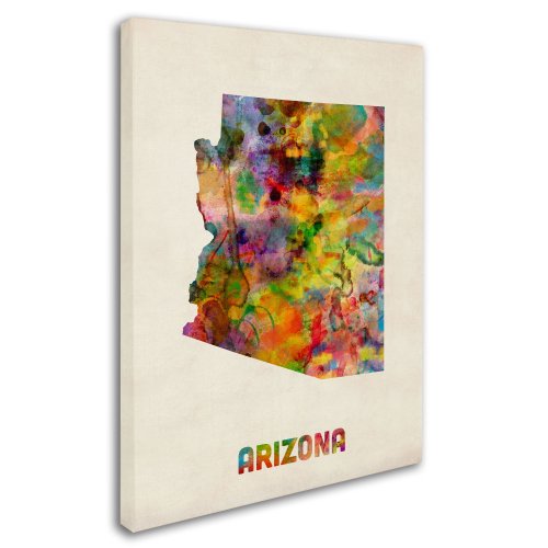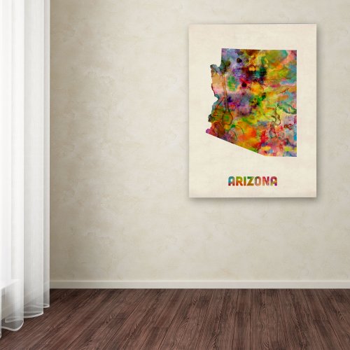 This gallery-wrapped art piece features a colorful map of the state of Arizona.