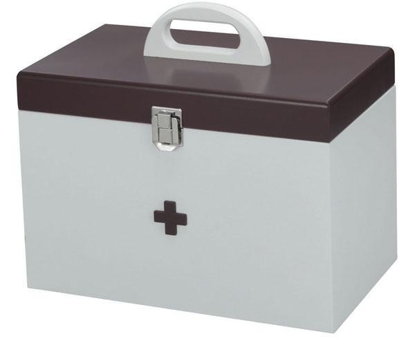 ご家庭の常備薬や小物類を収納できる救急箱です。収納性はもちろんデザインも優れものです。 製造国:台湾 素材・材質:MDF・スチール 商品サイズ:W292×H253×D186mm 重量:1550g ※サプライヤー直送品 ご注文後3~4営業日後の出荷となります【商品名】救急箱 60055