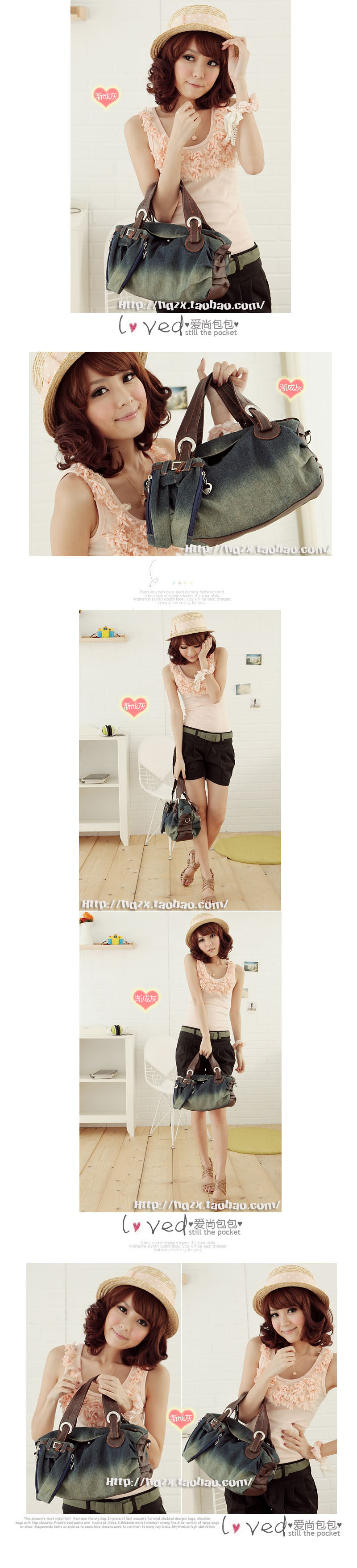 Blue denim color [black] [] [Cowboy] had become gray bags outside the bag there is a back zipper pocket.