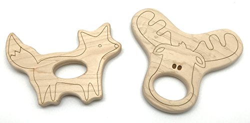 Little Sapling Toys Natural Wooden Baby Teether Set - Forest Animals Fox and Moose