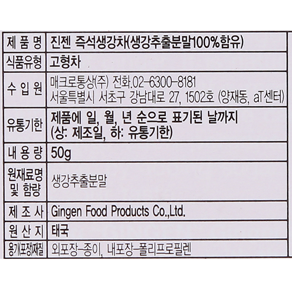 1. 진젠 즉석생강차 50g