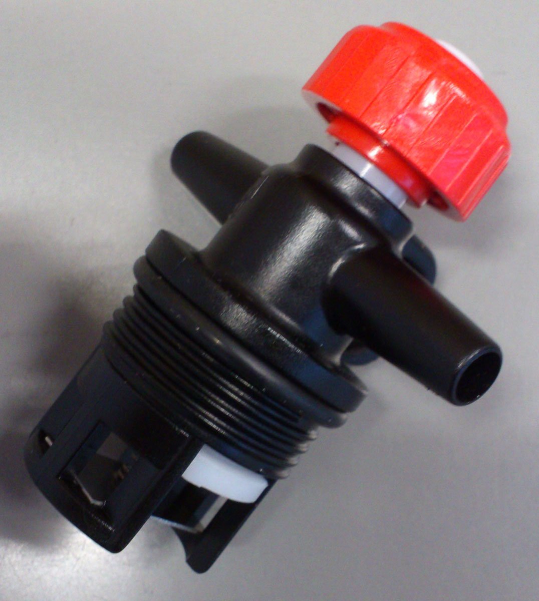The lid is a Safeflex valve, and the valve is opened by turning the red knob and pushing down the button.