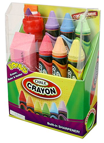 Product Description Create sidewalk masterpieces with this deluxe chalk set that features drawing tools! The set includes 6 colorful four-inch chalks, chalk holder, chalk sharpener, eraser, and ruler. 0