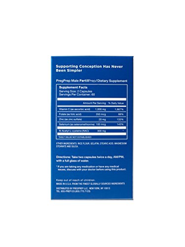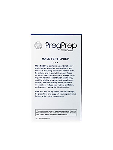 PregPrep Male FertilPrep supports sperm concentration, motility, and morphology while promoting ideal conditions for reproductive health using a combination of well-studied vitamins, minerals, and antioxidants. Key ingredients include: - N-acetyl Cysteine (NAC) -- enhances sperm motility, structure, count and volume - Vitamin C, improves semen quality by increasing, sperm count, motility, and morphology - Folate, increases total sperm count and improves semen health - Zinc, increases sperm concentration - Selenium, improves sperm motility How to Use: Take two capsules twice a day, AM/PM, with a full glass of waterFeature