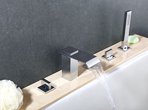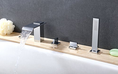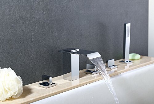 Contemporary 5PCS Waterfall Bath Tub Faucet with Handheld Shower, Chrome