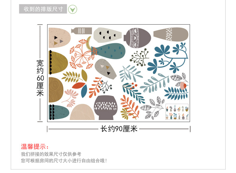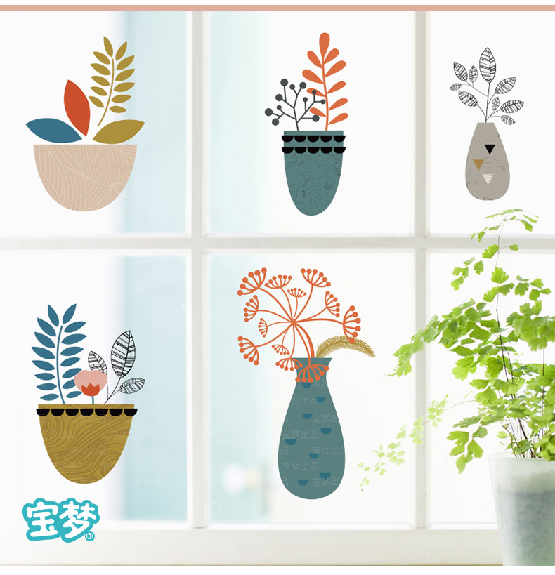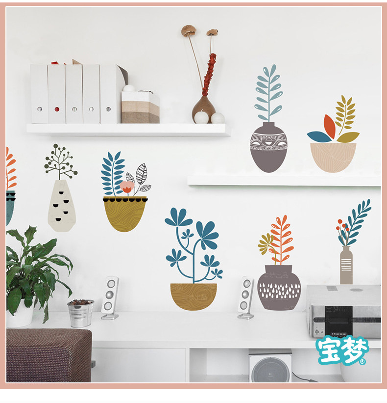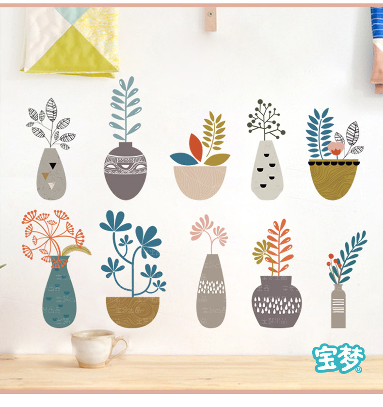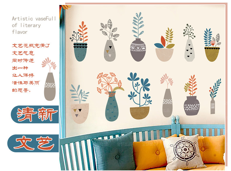 田园清新花瓶花盆栽墙贴纸创意客厅走廊玄关楼梯文艺自粘墙纸贴画