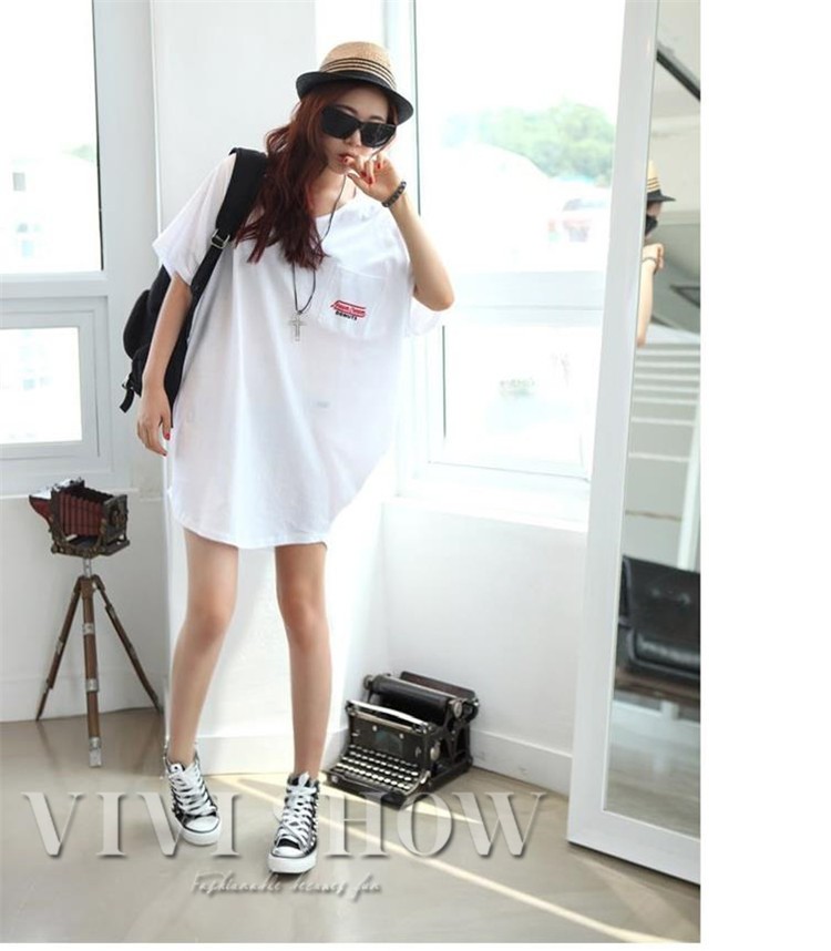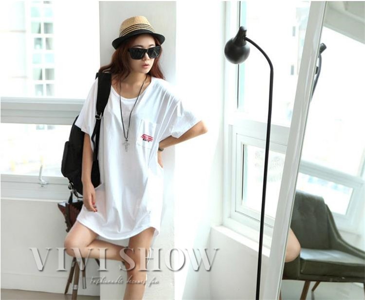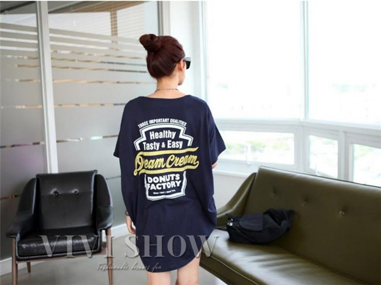 バックプリント入りTシャツワンピース。てっろっとしたシルエット感が、体系カバーはもちろん華奢見せ効果バツグン♪スタイリッシュなプリントでクールにかっこよく!活発な元気な女の子な印象をあたえてくれます★