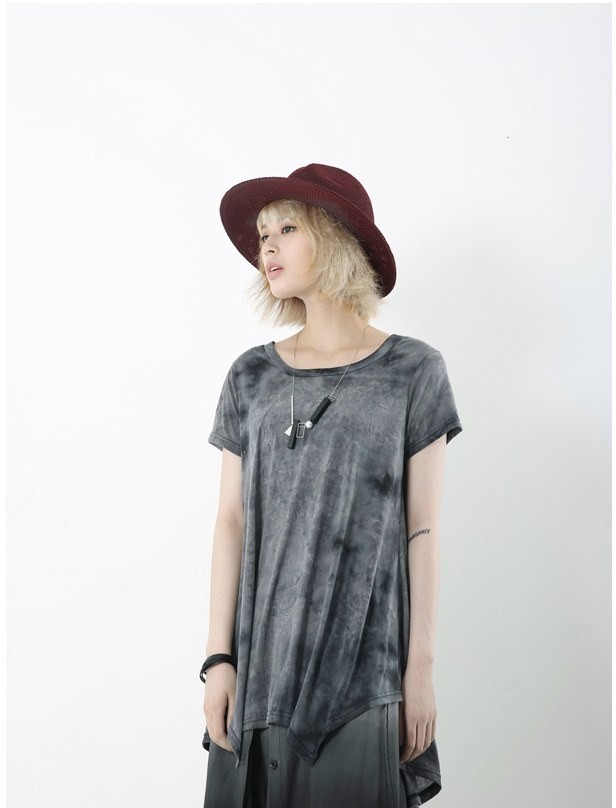 商品名:Tシャツ レディース トップス 半袖 ウォッシングカラー 個性的 春 2018 モード系 個性的 40代 ファッション
