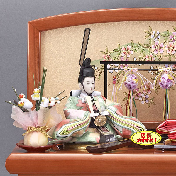 ・台座・屏風等には落ち着いた色目の雛人形セット。