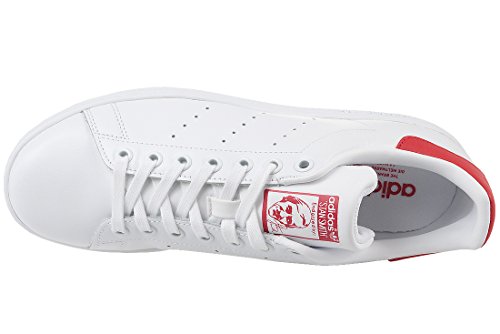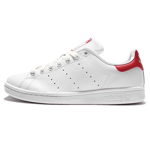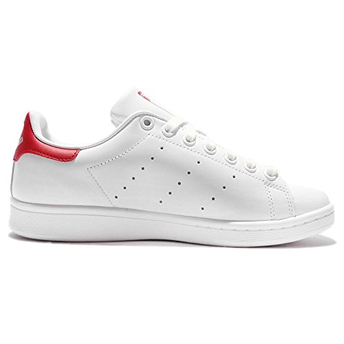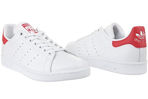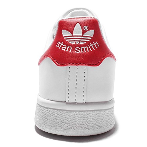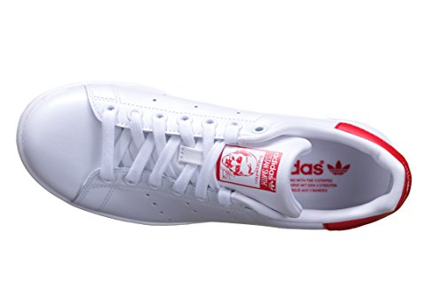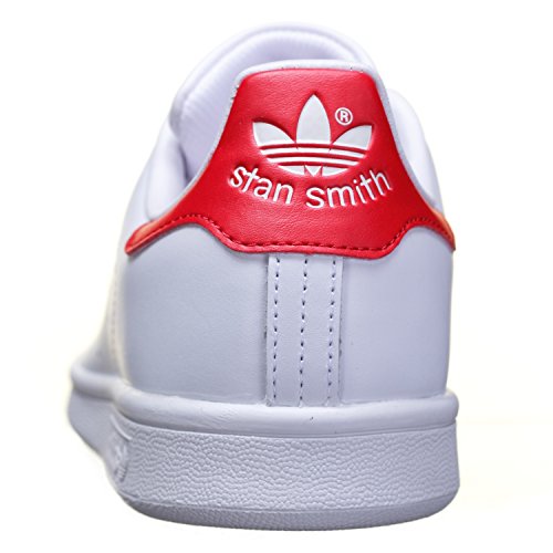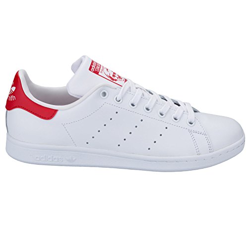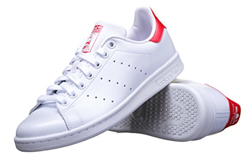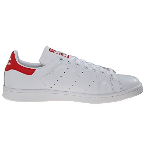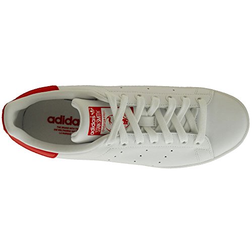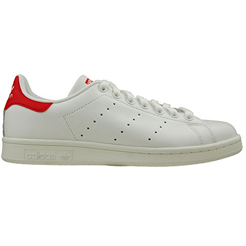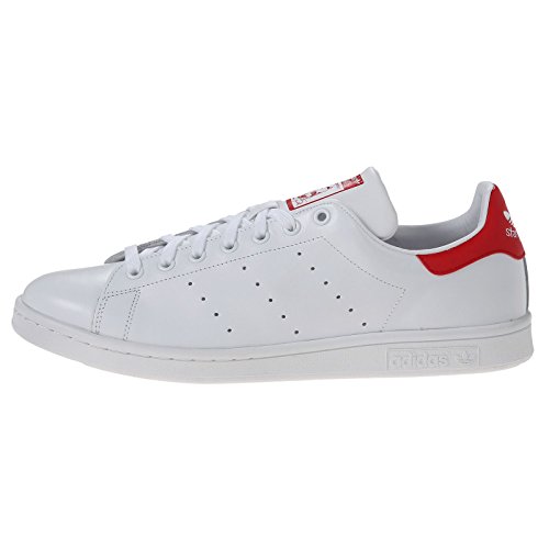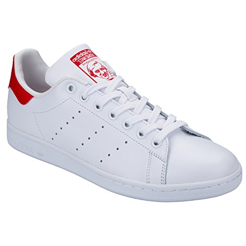 Studio : Adidas Publisher : Adidas Binding : Apparel Product Description An absolute classic, the Original Stan Smith trainers for men from Adidas still hold a special place in style history. Updated with a modern twist, these white and red low tops feature a smooth full-grain leather upper with perforated 3-Stripes to the sides. The lining of these sneakers is both breathable textile and durable synthetic offering good ventilation and comfortable wear.The removable, padded, textile lined insoles and the full-length EVA midsole cushions your every step to keep you on the move for hours. These lace up trainers have a lightly padded tongue and collar which combined with the classic lace-up front ensure your feet are comfy and snug while out and about. The signature Stan Smith logo on the tongue will catch everyone's attention.Finishing these lace ups is the tonal rubber outsole which provides good grip either on the tennis court or while out on a city walk. 0