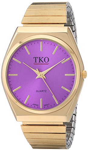 TKO Gold Stainless Steel Expansion Bracelet Stretch Thin Case Purple Face Flex Teen Girls Watch TK649PR