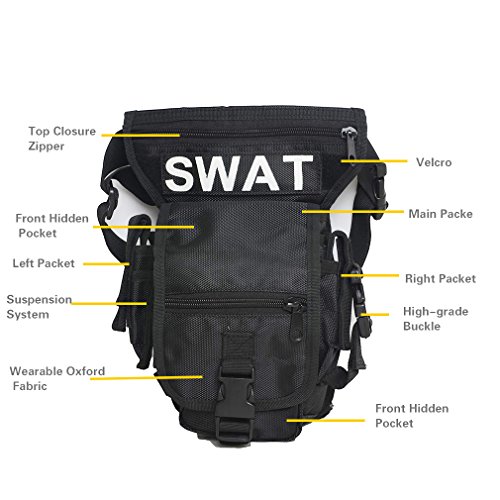 ADJUSTABLE/REMOVABLE STRAP:Leg straps can be removable,Waist&Leg Straps with Adjustable Quick-release Buckle as a Lightweight SWAT Cross Over Tactical Leg Rig Bags