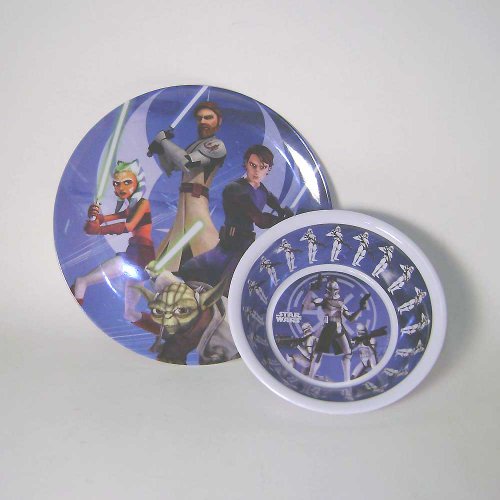 -. Feature : Featuring Star Wars Clone Wars animated art work / 2 piece plastic dish set includes 5-1/2" bowl and 8" plate