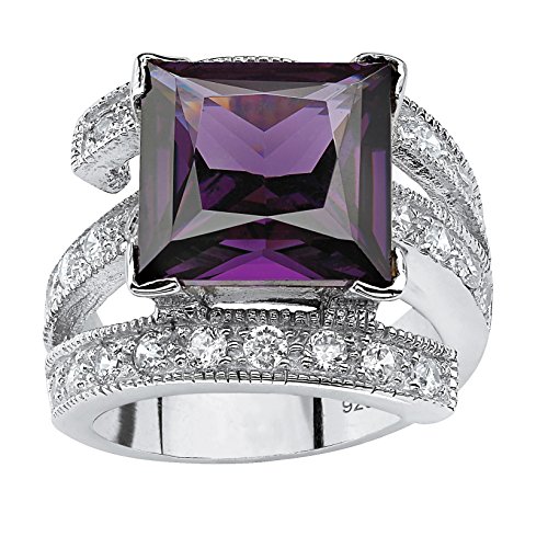 -. Title : Princess-Cut Purple Cubic Zirconia .925 Sterling Silver Cocktail Wrap Ring