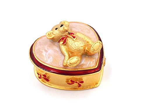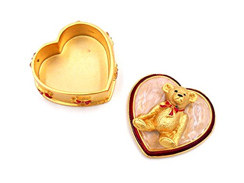"Teddy Bear" Heart Enameled Trinket Box by Heritage Museum Jewelry Replicas