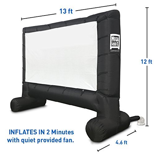 FAST AUTOMATIC SET-UP - Inflates in 2 Minutes with quiet provided fan. When inflated, this Big Movie Projector Screen measure 13’ wide x 12’ high with feet measuring 4.5’ deep.