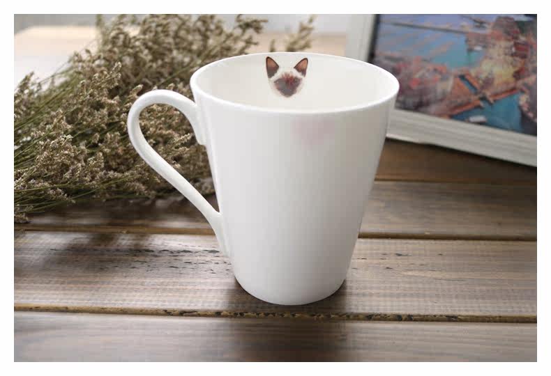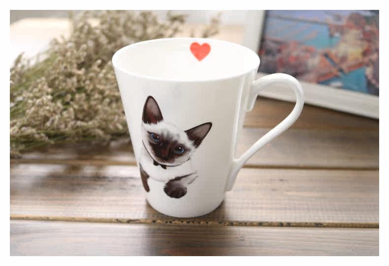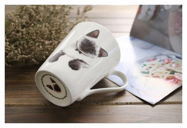 创意简约陶瓷杯马克杯萌宠暹罗猫大容量办公室可爱牛奶咖啡杯水杯