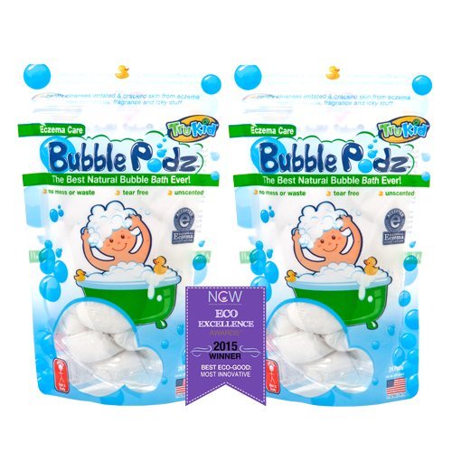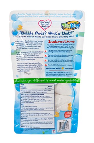-. Binding : Misc. -. Brand : TruKid -. EAN : 0611455108021 -. Feature : Extra gentle and unscented: no chemicals or fragrances; made only with good-for-you, all-natural ingredients. / 24 Single-Use podz burst into a tubful of natural, long lasting bubbles in each pack. / Ultra calming ingredients including Colloidal Oatmeal, Milk Powder, Allantoin and Vitamin E soothe irritated dry skin. / Leaves no icky or itchy feeling behind. / No mess, no waste: TruKid Bubble PodzTM are pre-measured and ready to use. No more accidentally pouring out the entire bottle of bubble bath! -. Label : TruKid -. Manufacturer : TruKid -. Model : TK10800-2 -. MPN : B00MEX6KAU -. NumberOfItems : 2 -. PackageQuantity : 2 -. PartNumber : B00MEX6KAU -. ProductGroup : Beauty -. ProductTypeName : BEAUTY -. Publisher : TruKid -. Studio : TruKid -. Title : TruKid Eczema Care Bubble Podz - 2 Pack (Formerly known as Bath Blasts) -. UPC : 611455108021