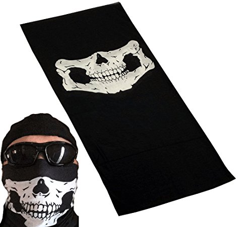 -. Feature : Multi-use - Can be worn as a neckerchief, headband, wristband, skull mask, hair-band, scarf, headband, scrunchie, skull cap, skull beanie or skull bandana. / Material - Made of 100% Polyester microfiber(it fits very comfortable wherever you wear it) / Tubular Design - Completely seamless design which will fit snug and tight everywhere in this ghost mask. As seen by players of many games and used as : mw2 ghost mask, cod ghost mask, punisher skull bandana and many others. / Washable - Machine washable, when it gets dirty just throw it in the washer(You will love this skull face mask). / Durable - Suitable for many outdoor sports: skiing, hiking, cycling, airsoft, paintball,etc (It can even be used as a skull mask for your motorcycle).
