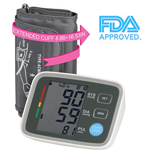 -. Feature : [2 User Capability] 2 x 90 sets memory function. Easily switch between 2 users and each unit has individual classification index which can store 90 sets measurements. Each measurement result will be displayed on the screen, and automatically recorded with date and time, perfect for blood pressure tracking. / [User Friendly] The monitor has easy operation with one button to start and stop measurement. Large LCD Display helps to read measured values, dates and times clearly. No stethoscope needed and convenient to operate alone. / [Wide Range Cuff] This cuff widely fits for standard and large adult upper-arm circumference between 8.7 - 16.5 inches. It can be easily slips over the arm and wrap tight without being painful when inflated. The intelligent inflation will reduce the uncomfortable feeling, shorten the measurement time and prolong the service life. / [Functional Indicator] The WHO (World Health Organization) classification indicator displays for the blood pressure measurement, and IHB (Irregular Heartbeat) indicator shows up along with the reading if any irregular heartbeat is detected during the measurement. / [Power Optional] Our monitor is powered by 4 pcs AA batteries, or by 6V AC adapter. BOTH NOT INCLUDED.