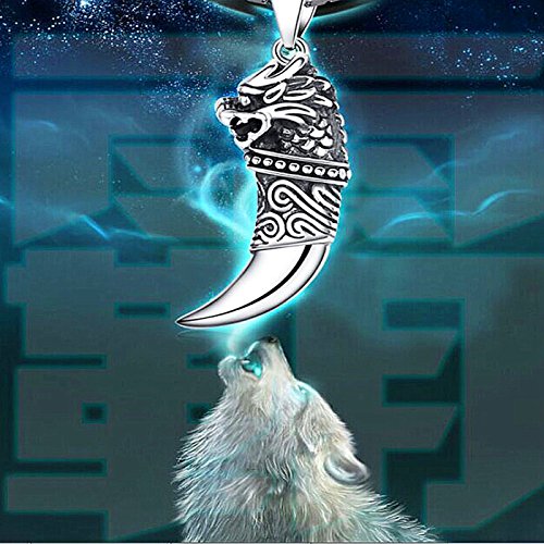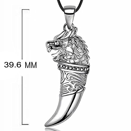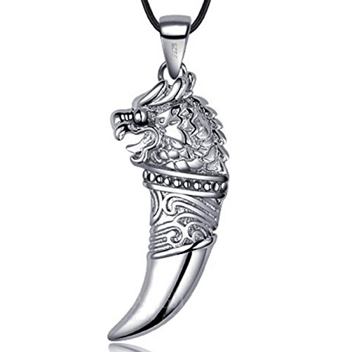 -. Title : 925 Sterling Silber Dragon Head Wolf Zahn Anhänger Halskette 55,9 cm Freund Geschenk