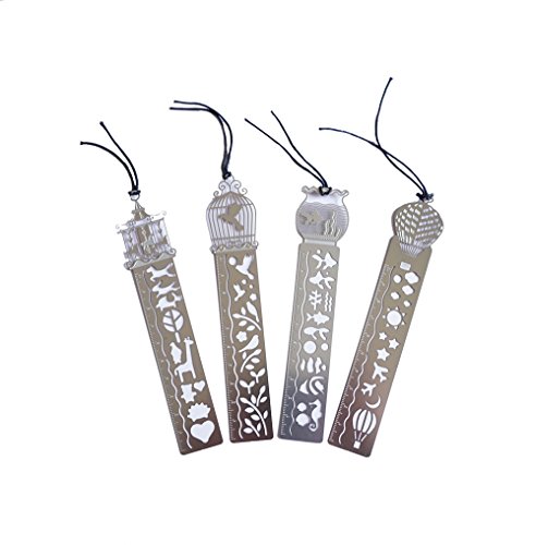 Bilipala 4 PCS Multi Function Metal Hollow Centimeter Ruler Drawing Ruler Bookmarks Silver